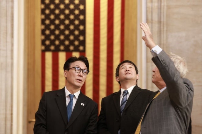 의원들도 “한미 간 핵심광물 공급망 등 경제안보와 조선 협력을 포함한 다양한 영역에서 협력을 강화하고, 한미일 협력 또한 확대해 나가기를 희망한다”며 한미 동맹에 대한 초당적 지지를 강조했다. 이어 앞으로도 한국 기업들이 대미 투자에 관심을 갖고 진출해달라고 요청했다.